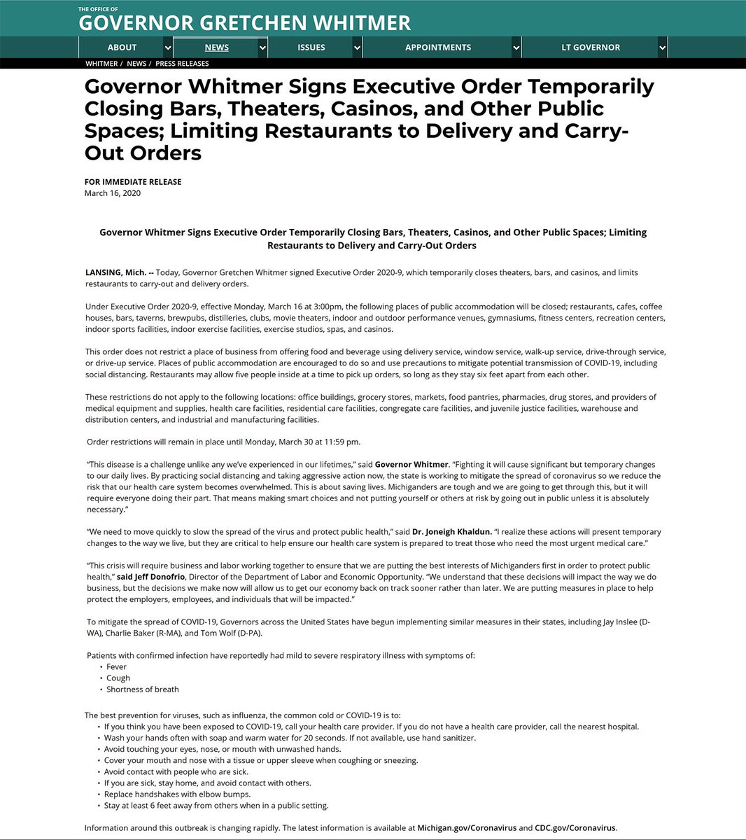 Executive order michigan. Today governor gretchen whitmer signed executive order 2020 160 and executive order 2020 161 amending michigan s safe start order and issuing revised workplace safeguards. Gretchen whitmer has issued since the start of the coronavirus covid 19 pandemic including details about the changes expiration dates. On friday morning mlive reported that the county public health department s interpretation of executive order 160 issued on wednesday july 29 would spell the shutdown of michigan s.